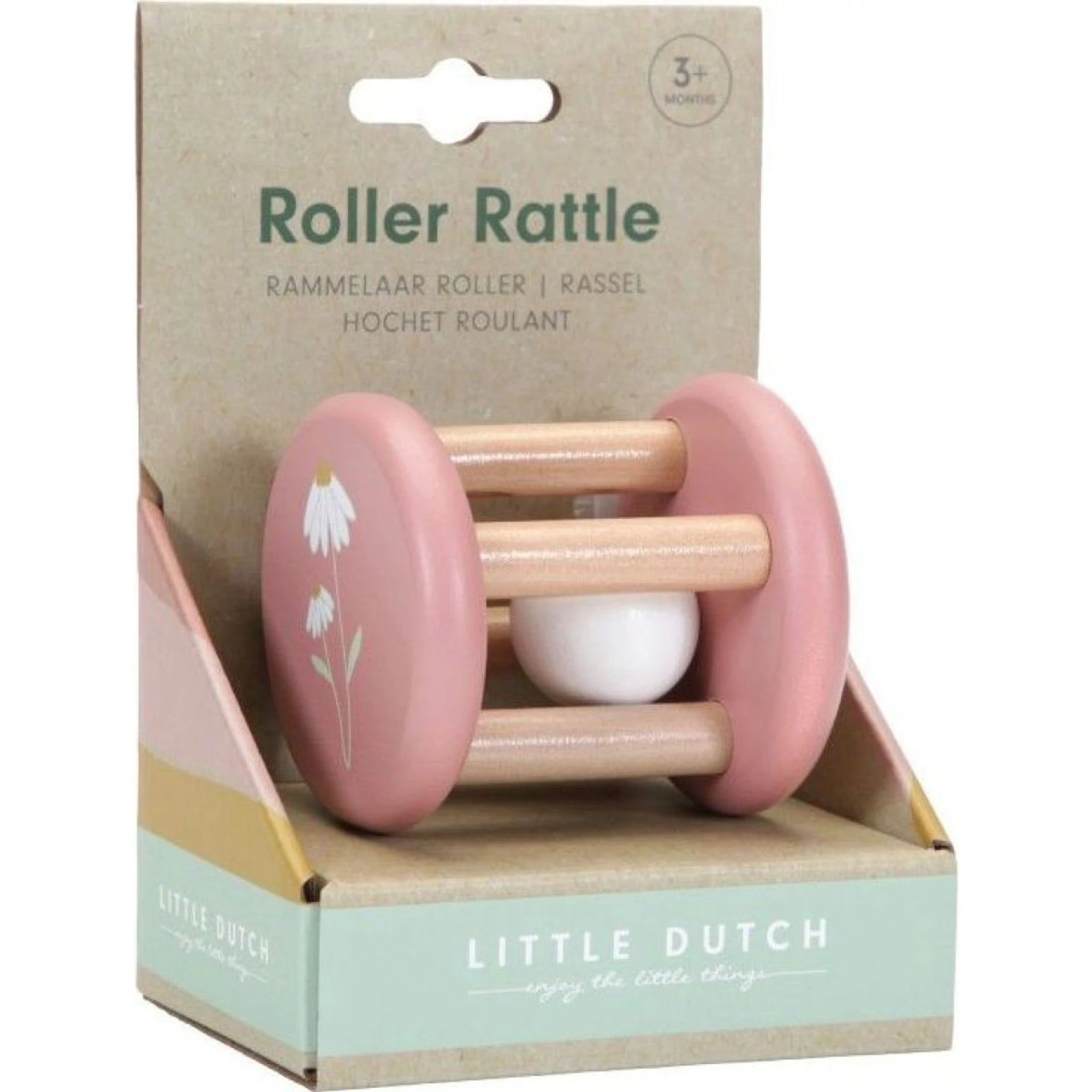 Zornăitoare din lemn cu biluță zăngănitoare face parte din colecția Pink Flowers.